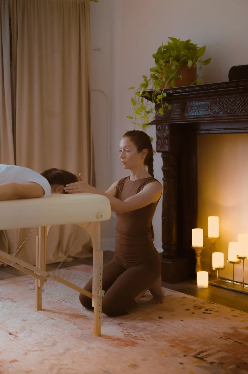 Gentle, targeted touch along the spine to activate your body’s innate healing intelligence, releasing stored stress and tension at the source.Integration & Rest Period